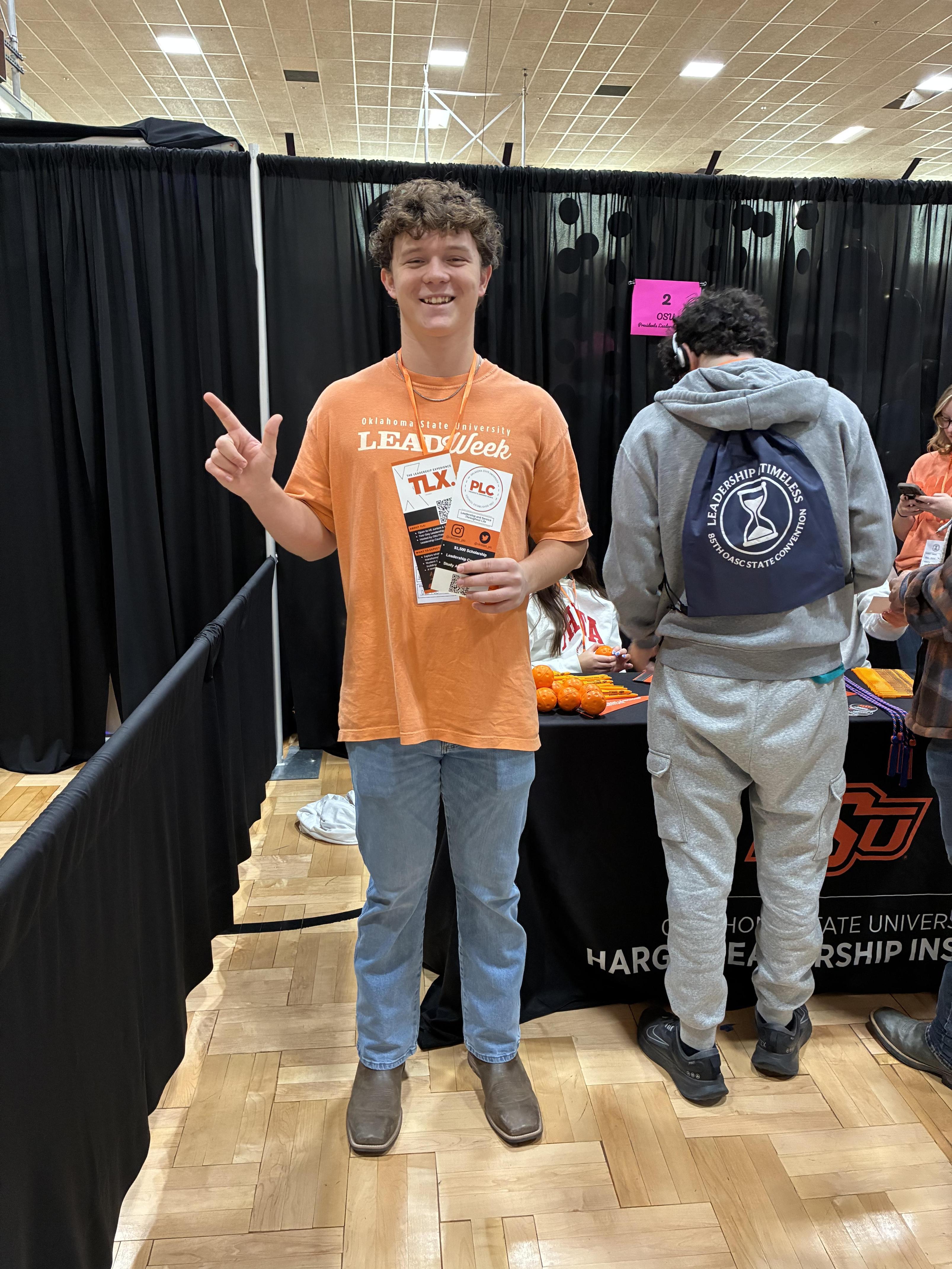 The convention opened with an exhibit hall filled with booths representing colleges and leadership organizations. Among them were the OU High School Leadership Conference (HSLC) and OSU President’s Leadership Council (PLC), both represented by Perry alumni Meagan Rames and Korben Heister, respectively.