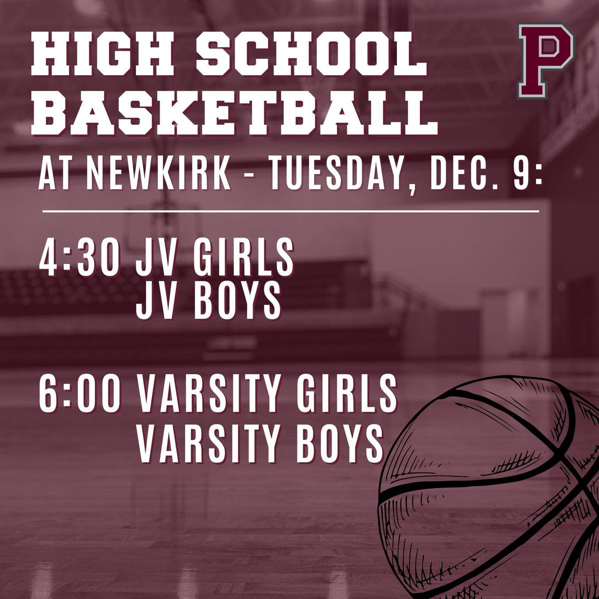 PHS BBALL @ NEWKIRK 12/9 Newkirk High School625 W. South StreetNewkirk, OK 74647 Published December 8, 2025 Print