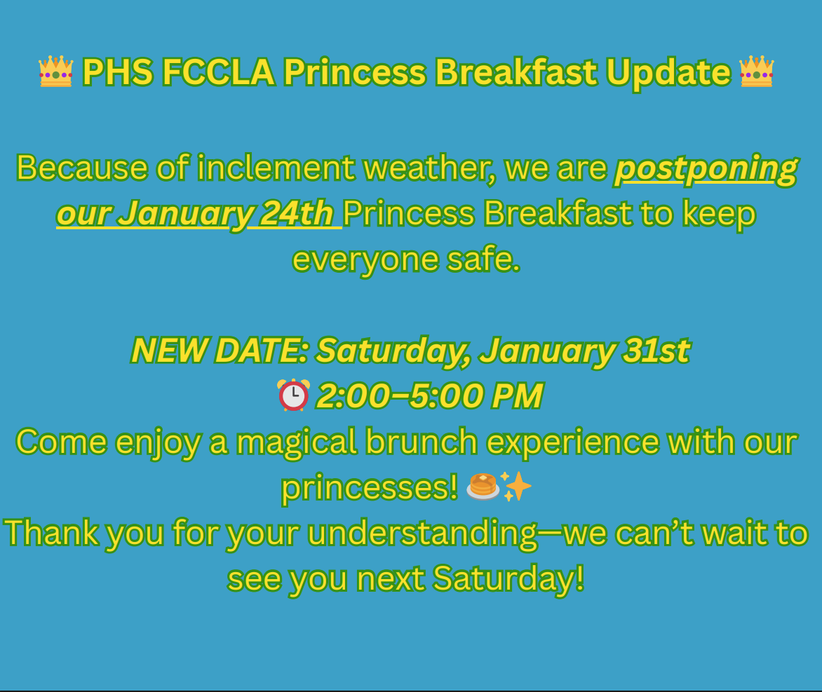 • $30 family of 5Checks payable to "PHS FCCLA."