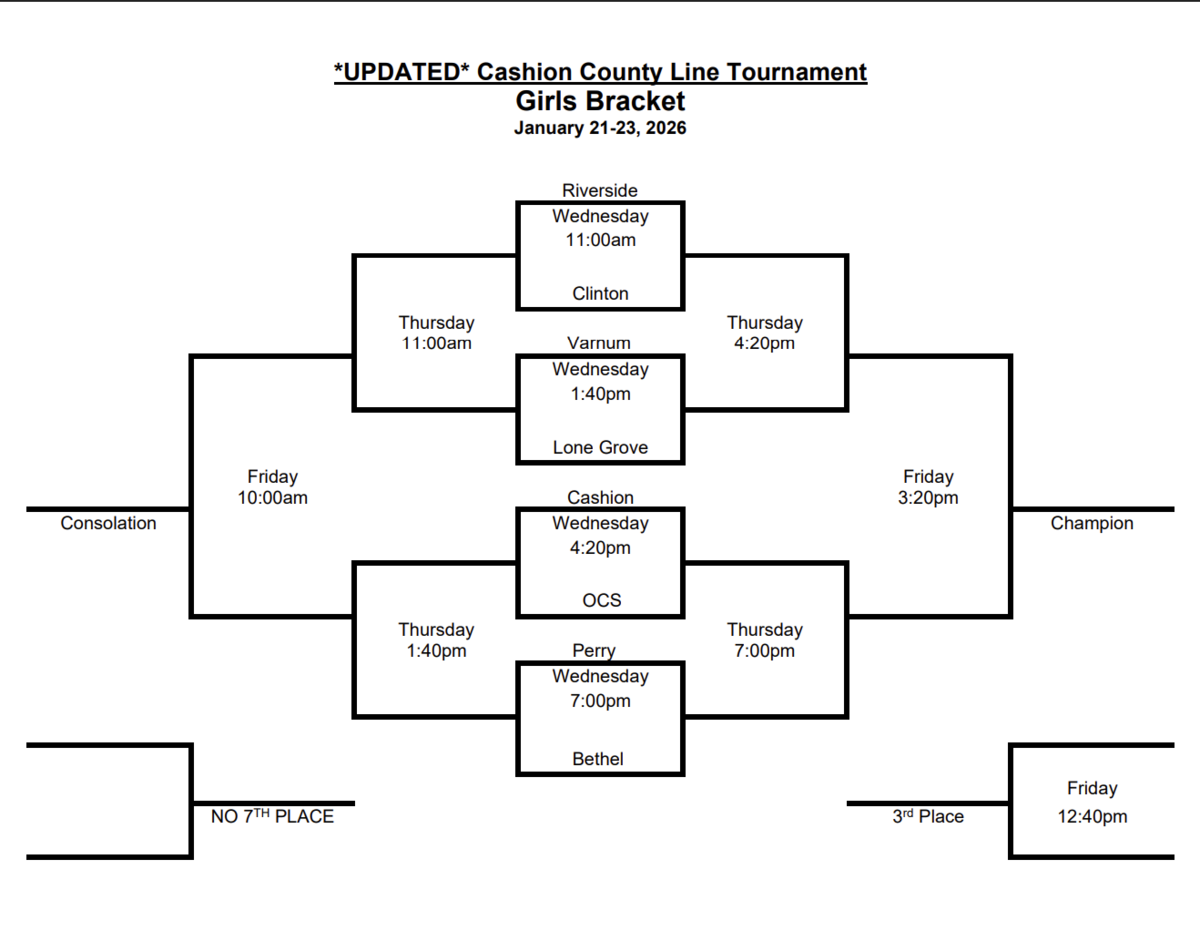 • The team on the top line of the bracket will be considered the home team and wear a white uniform unless playing Cashion.