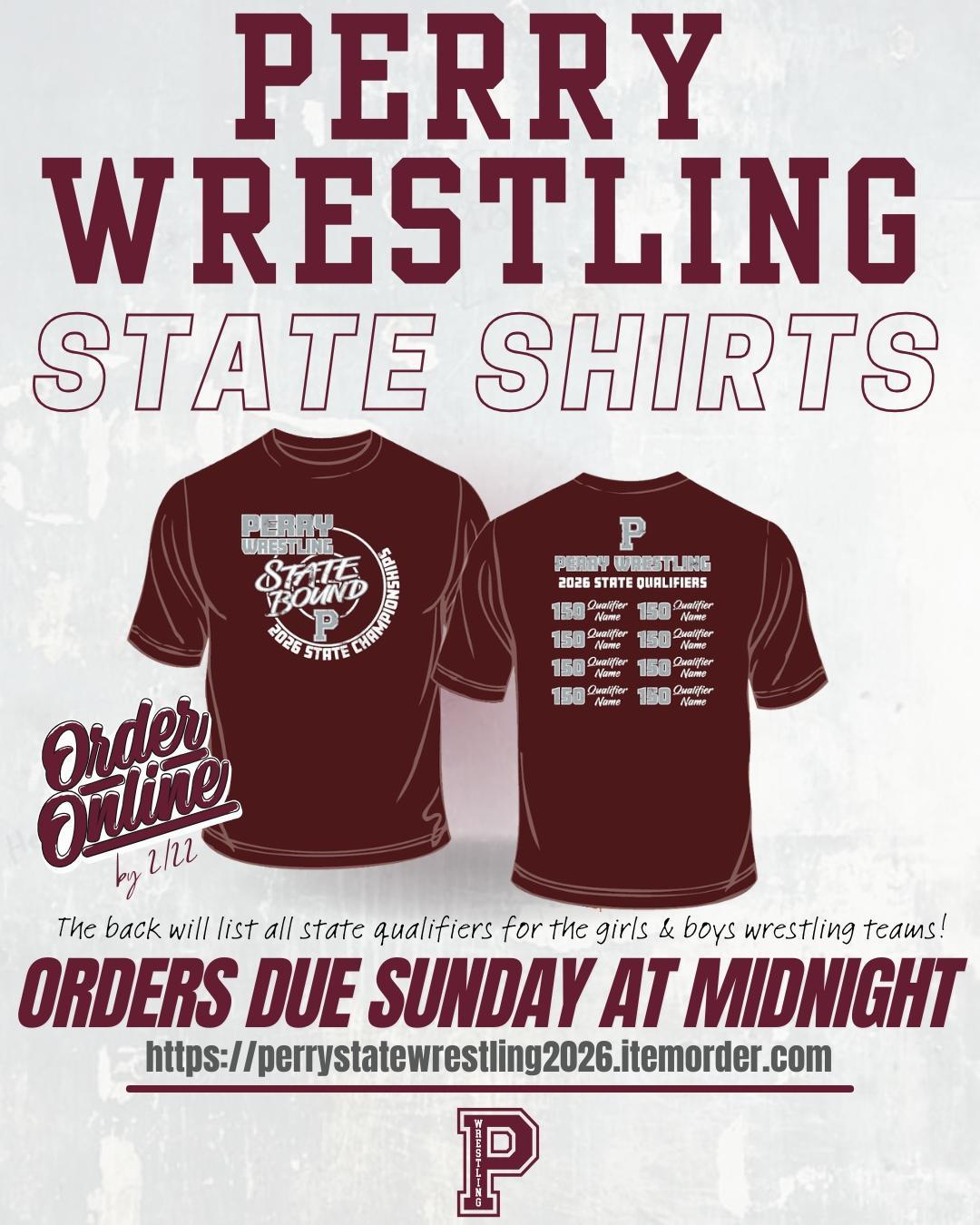 Support our Girls & Boys State Qualifiers by ordering your 2026 State Wrestling shirt!